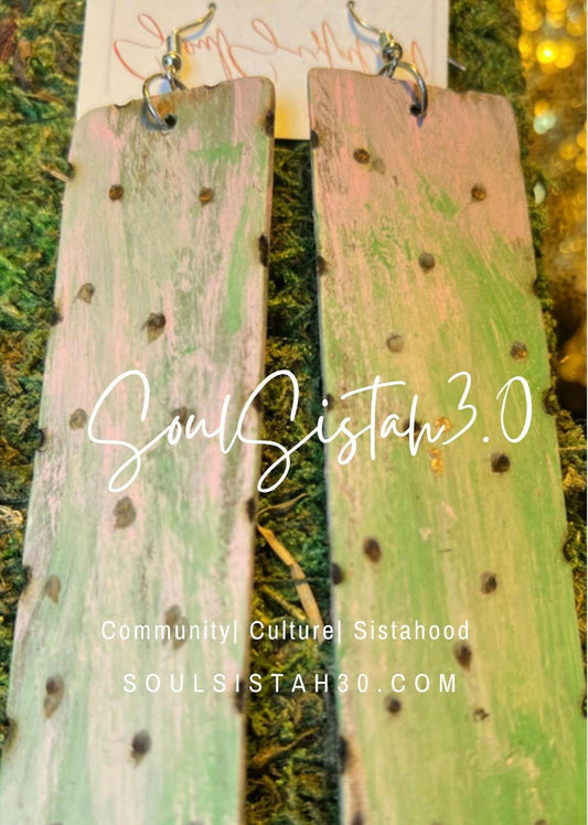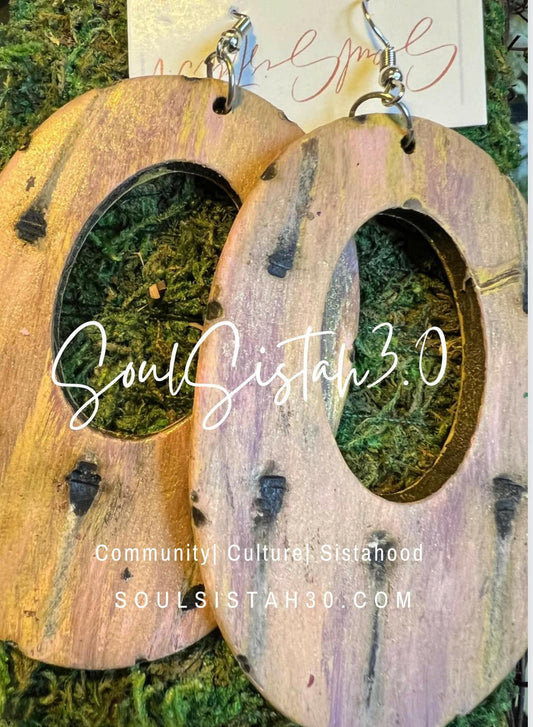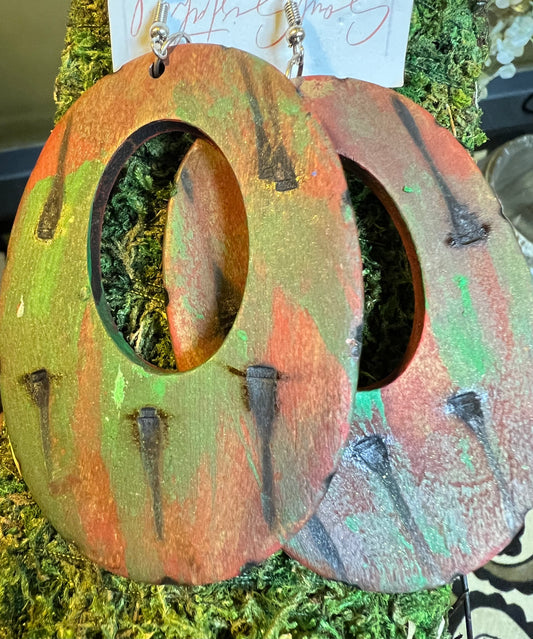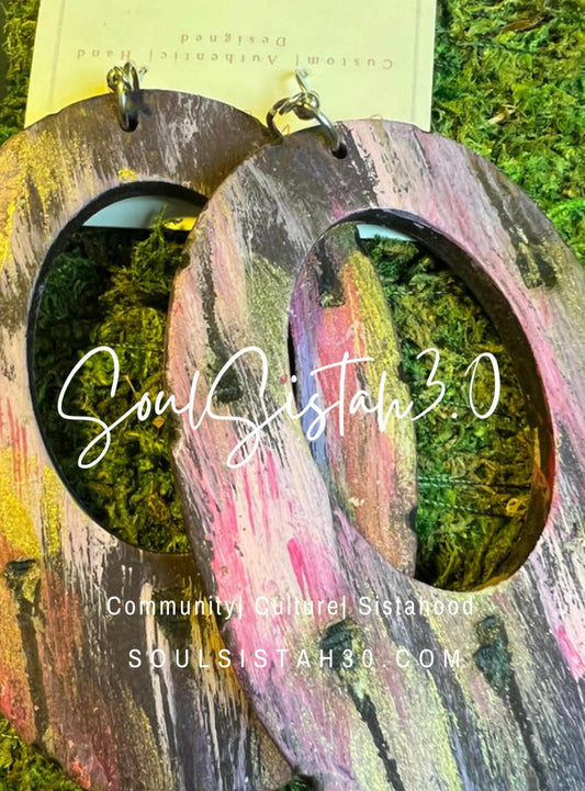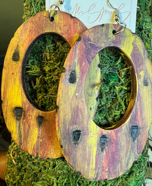 This collection is hand painted, and wood burn wooden earrings. Every pair is a one-of-a-kind piece. Each color is chosen to reflect the beautiful colors of nature.