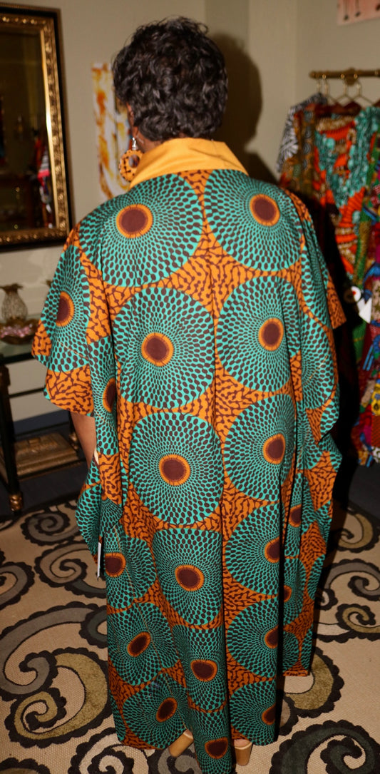 The beautiful piece is made with Ghana fabric and in Ghana. The size is Medium to Large.